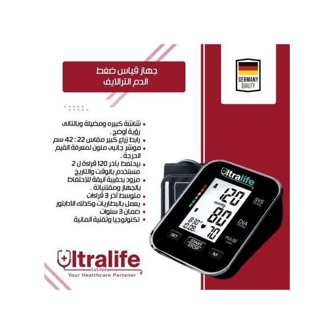جهاز قياس ضغط الدم ( ديجيتال ) ماركة الترا لايف Ultralife Genau Plus الألمانية مستورد ضمان سنتين + ادبتور ( شاحن ) هدية