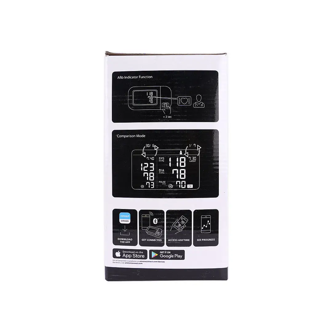 – اتصال بلوتوث لمزامنة النتائج تلقائيًا مع تطبيق اومرون كونكت أو عبر الأوامر الصوتية عبر اليكسا.