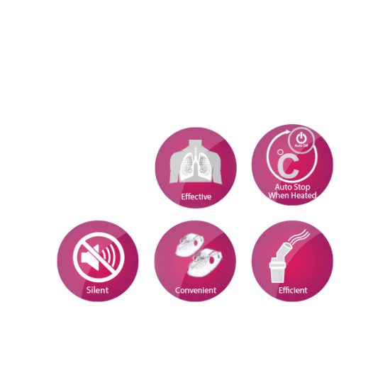 – تصميم انسيابي الشكل لتجنب تسرب المياه للجهاز في حالة سقوط قطرات من محلول الإستنشاق
