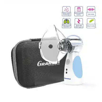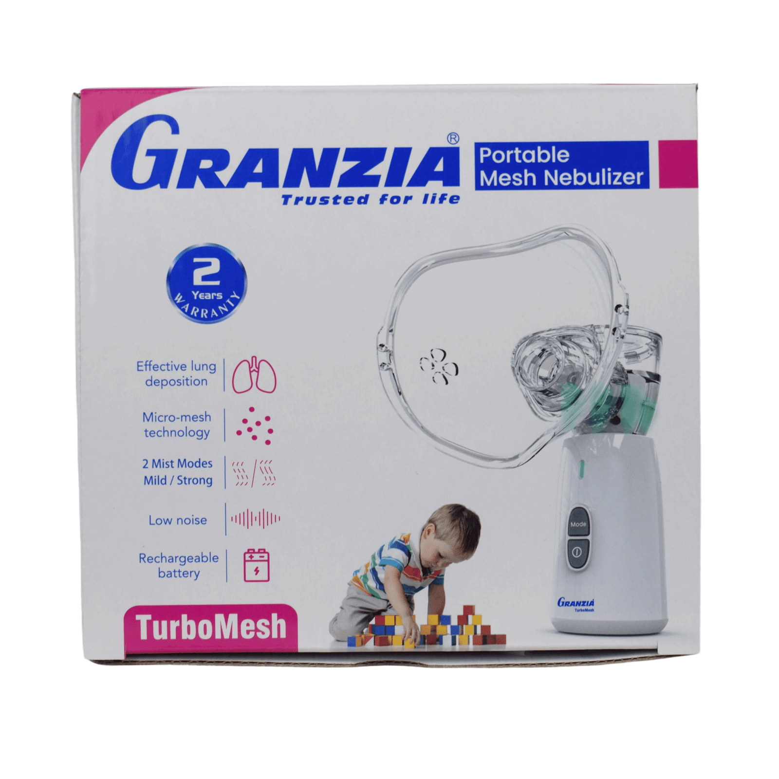 جهاز نيبولايزر ( إستنشاق البخار ) المنزلى ( محمول ) يعمل بالبطارية ماركة جرانزيا تربو ماش Granzia Turbo Mesh الايطالية مستورد ضمان سنتين