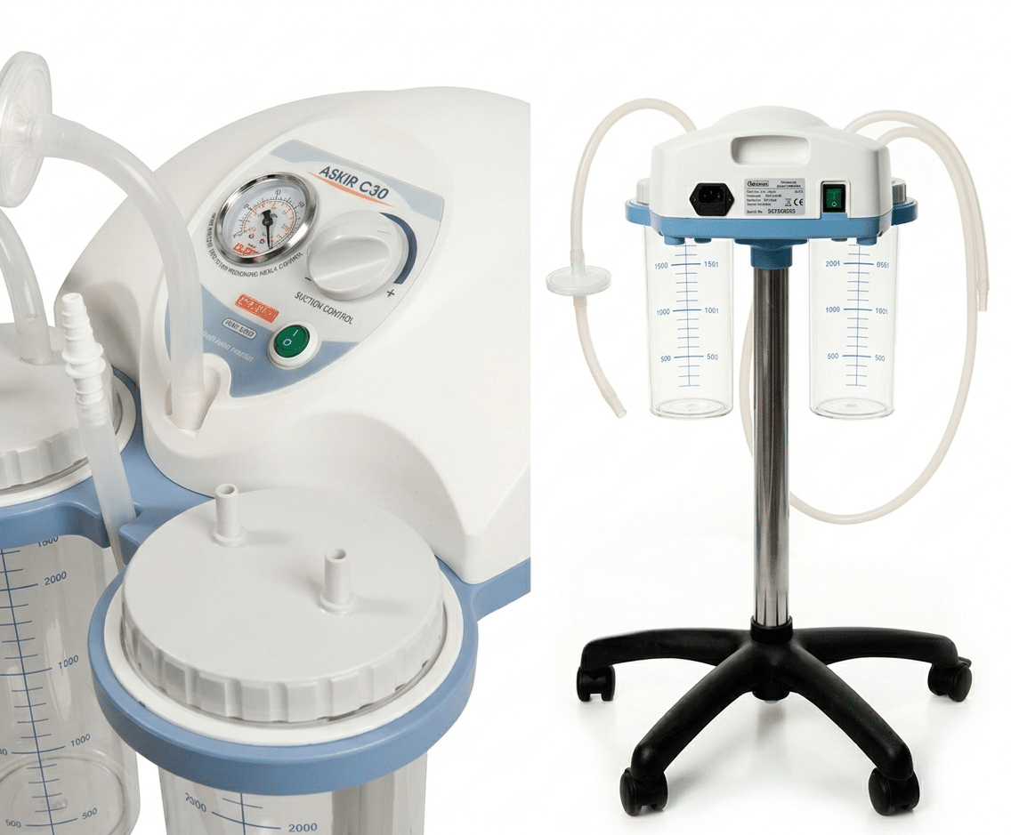 أما جهاز شفاط العمليات الجراحية ASKIR HOSPIVAC فيتميز بتوازن جيد بين قوة الشفط وسعة الحاوية وسهولة الاستخدام، مما يجعله مناسبًا للعديد من التطبيقات الطبية.